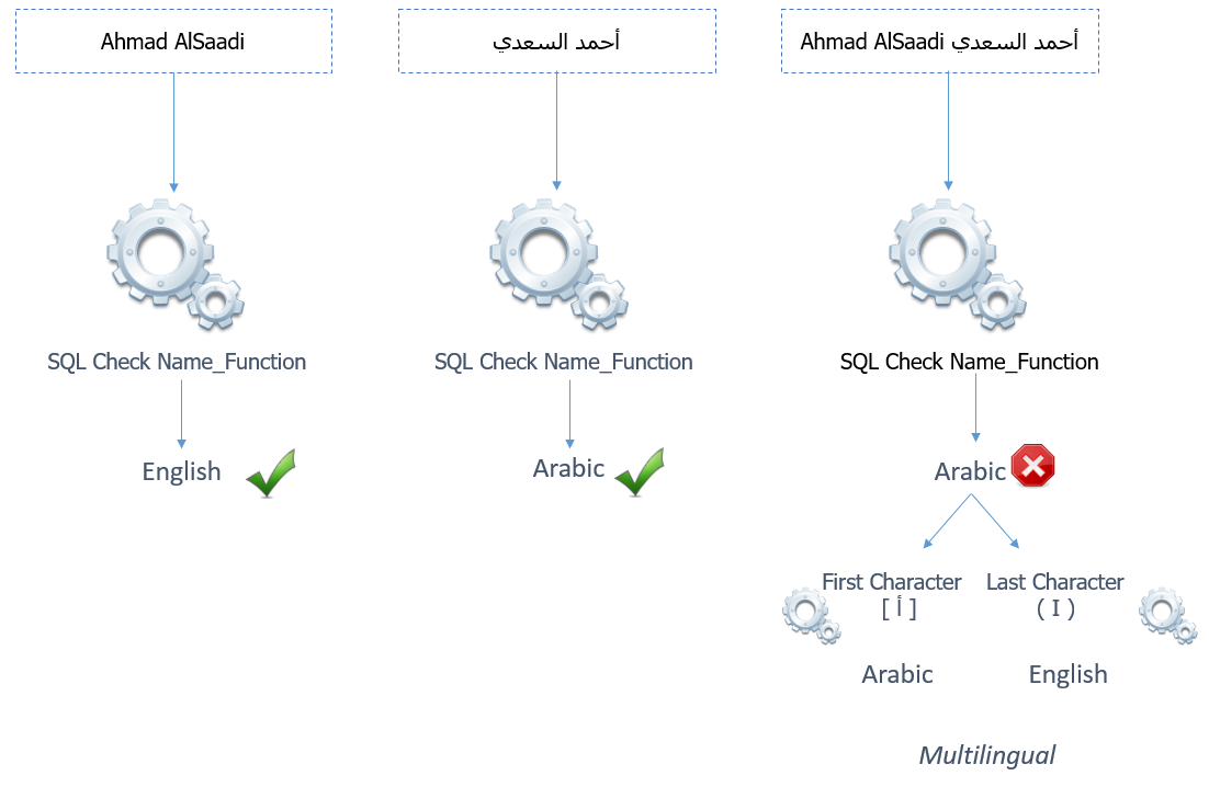 SQL Server - Determining the language of a name: Arabic English or Multilingual.