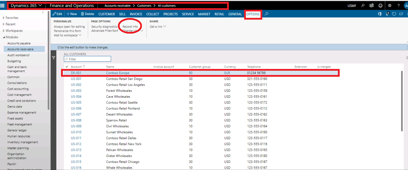 you can access accounts receivable/customers /all customers