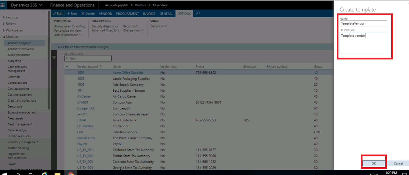 How to Create customer/vendor template in Dynamics 365?