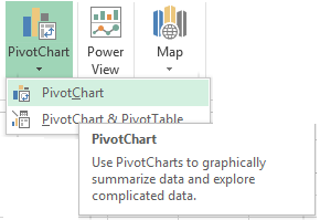 - Select PivotChart from the INSERT tab on the ribbon bar.