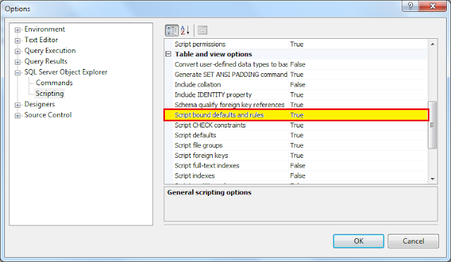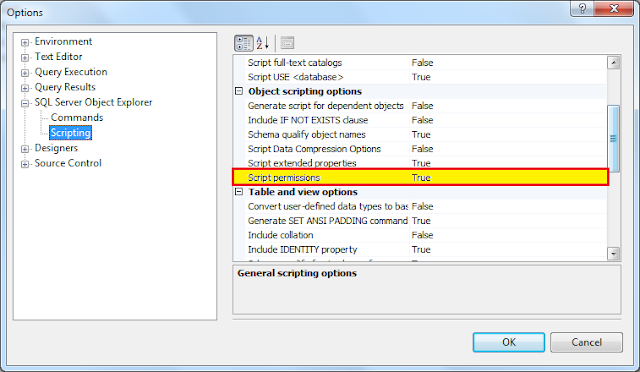 However, in his article, David points out that SSMS does not generate the object permissions and bindings necessary, hence the reason for the script he created and attached to his article. The bottom line is, these are configurable settings under SSMS's SQL Server Object Explorer options. To activate scripting of permissions and bindings in SSMS, follow these steps: