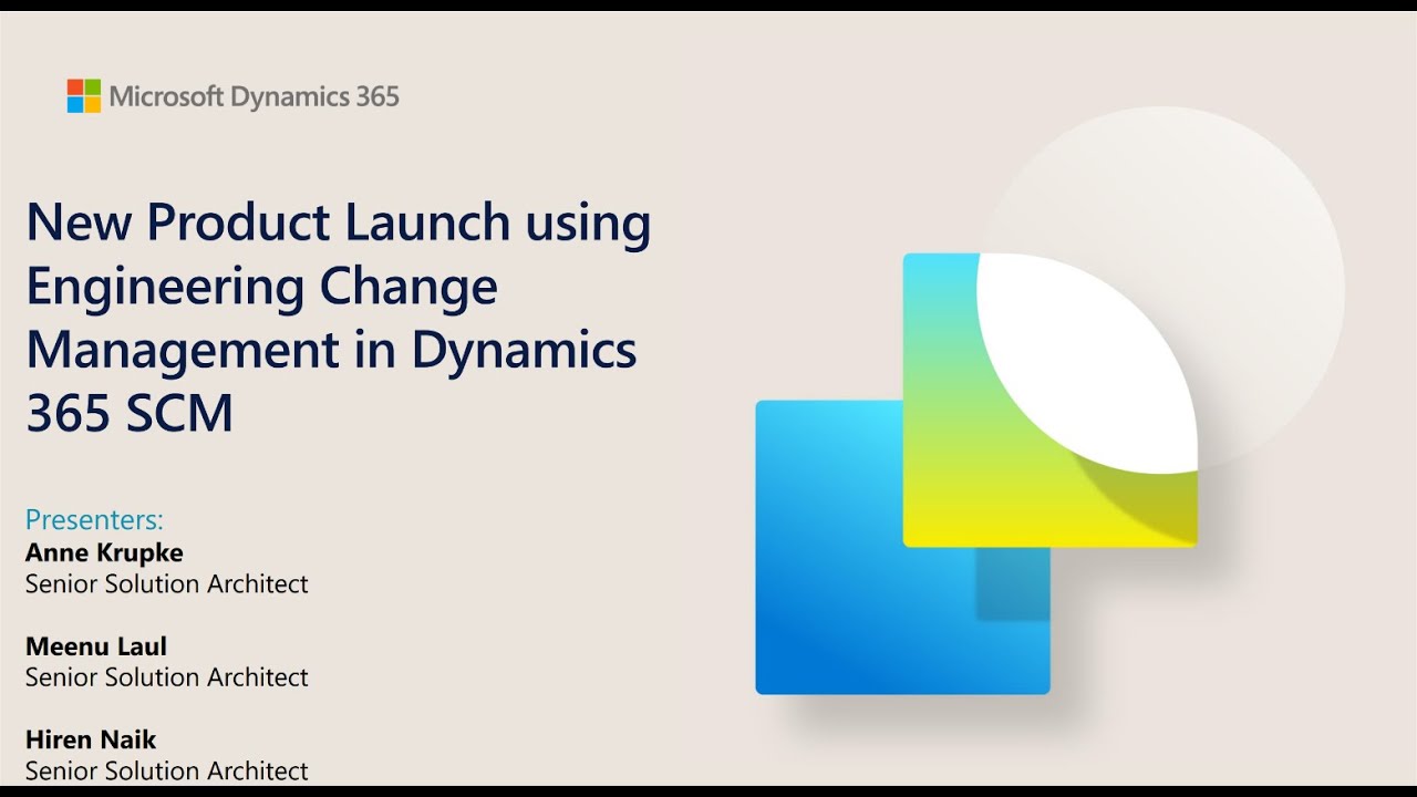 In this Tech Talk we will cover new product launch process using Engineering change management. We will cover setup and configuration required in new product launch process along with product readiness process. We will also cover how to convert non engineering product to engineering products along with best practices and guidance. This Tech Talk is part 2 of a 4-part series on Engineering change management in Dynamics 365 Supply Chain Management.
