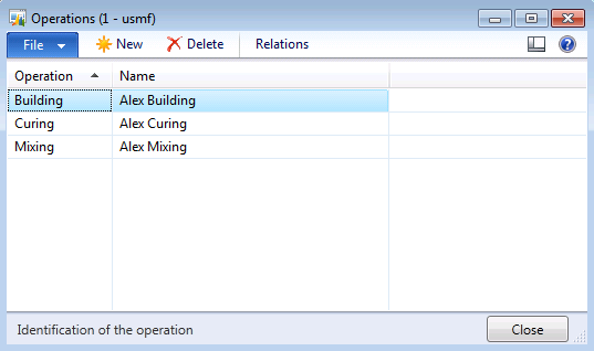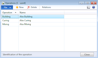 Car tire (AlexTire) will be manufactured using 3 operations routes. Before we can define routing we will need to define the list of operations in the system