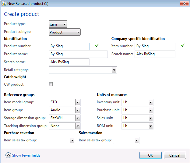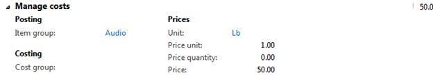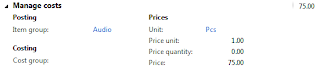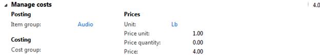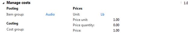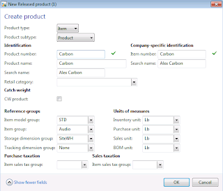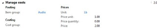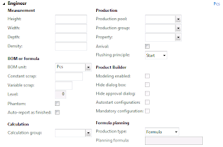 Number of released products will be created in Microsoft Dynamics AX 2012 which will have similar characteristics for the sake of simplicity. All of them will be Standard cost controlled, Site and Warehouse will be used as Storage dimensions, default Site and Warehouse settings will be defined for released products and finally cost price will also be defined for all released products (not using Formula calculation for Formulas). Please note that in process industries we deal with Batch controlled products however for the sake of simplicity I didn't introduce Batch as Tracking dimension in this scenario.