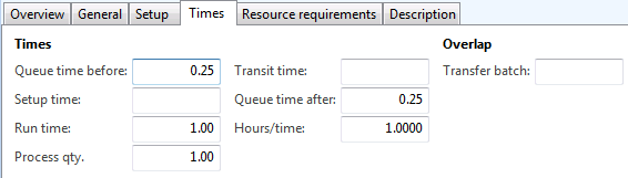 Please note that Curing operation requires Queue time before (0.25 hours) and Queue time after (0.25 hours) as well as Run time (1 hour)