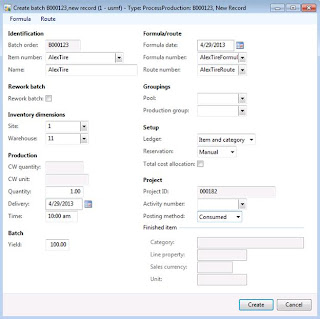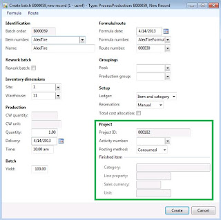 Challenge: Microsoft Dynamics AX 2012 out-of-the-box enables mixed mode manufacturing including traditional approach and other approaches including project manufacturing. Project manufacturing functionality in Microsoft Dynamics AX 2012 allows you to create project production orders, track production costs and invoice the customer for incurred production costs. Please note that for process manufacturers or mixed-mode manufacturers being able to use project batch orders makes a lot of sense. Project batch orders can also help with scenarios like disassembly and inverse BOMs (multiple outcomes from the production process represented as co-products) which are applicable for discrete manufacturers. Process manufacturing in Microsoft Dynamics AX 2012 has introduced number of new concepts such as formulas, co-products, by-products, etc. Please note that project batch orders functionality is not provided in standard Microsoft Dynamics AX 2012 and in order to enable project batch orders functionality I needed to do custom development. When traditional manufacturing approach is applied to production process itself, the challenge is to understand interrelations between production control and project accounting modules in Microsoft Dynamics AX 2012. The idea is that the reader with understanding of traditional manufacturing approach will be able to apply and "extend" this knowledge in order to implement project manufacturing scenarios in Microsoft Dynamics AX 2012.