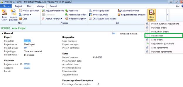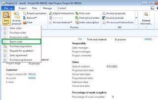 Please note that Project batch order option is not available in standard Microsoft Dynamics AX 2012