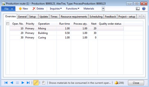 Car tire (AlexTire) route will consist of Mixing, Building and Curing operations which will be executed sequentially