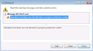 Please note that Standard cost items are not allowed on project production orders