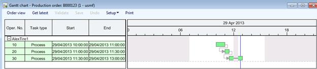 Project > Manage > Related information > Item task > Production order