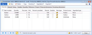 Purpose: The purpose of this document is to illustrate project manufacturing approach in Microsoft Dynamics AX 2012 on simplified example of process manufacturing of car tires. This document will focus on project batch order with Posting method = Consumed, and it will outline end-to-end functional flow for the scenario which includes setup (Section A), creation (Section B), estimation (Section C), scheduling (Section D), execution (Section E) and costing (Section F) aspects. Please note that project batch orders functionality is not provided in standard Microsoft Dynamics AX 2012 and in order to enable project batch orders functionality I needed to do custom development. Please review other documents in the series to compare process manufacturing approach to other manufacturing approaches in Microsoft Dynamics AX 2012.