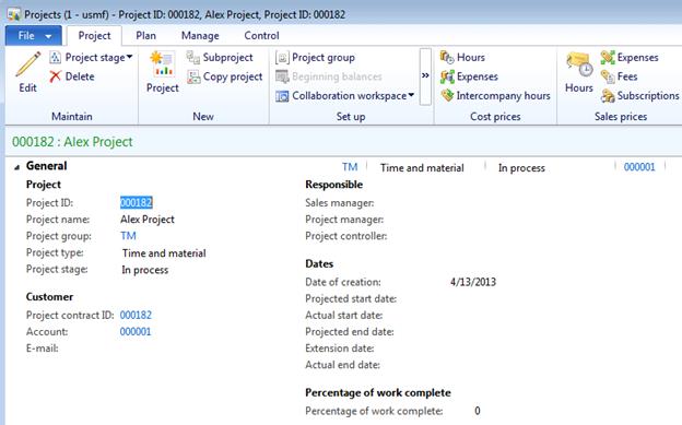 Please note that time and material project is linked to the customer and project contract defined earlier
