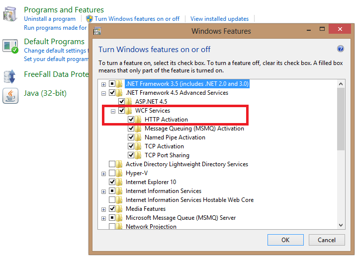 To turn on HTTP Activation on Windows 8:
