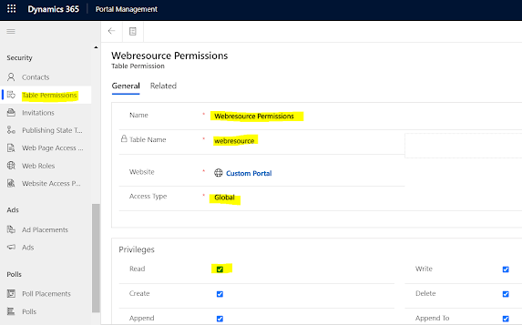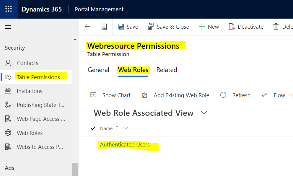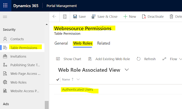 Associate appropriate Web Role to the Table Permission. I want to display the Custom Controls to all Authenticated Users. Hence I have associated Authenticated Web Roles to the Table Permission.
