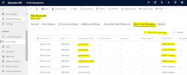 - In My Account Basic Form, I am displaying the portal logged-in user account details. Hence, I have chosen Record Associated to Current Portal User as RecordSource Type and took form in Edit mode, so that the portal user could update their account details