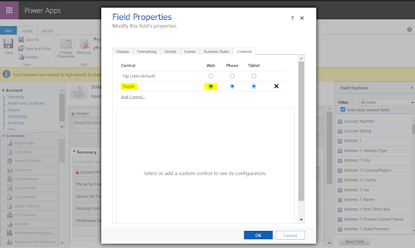 - Custom controls can appear as visualizations on forms, dashboards, views, and homepage grids. You can set one type of custom control to appear in the web browser client while having a different custom control appear in your Dynamics 365 for Customer Engagement phone or tablet mobile apps. For example, you could use a number input custom control for a field in web browser clients and a slider custom control for the phone app.