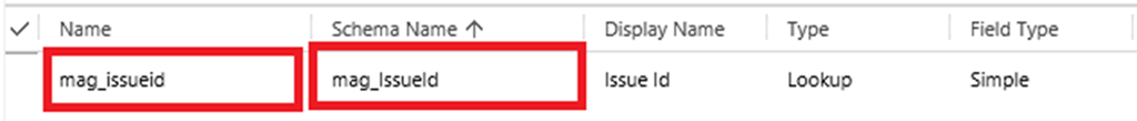 | Response | { "error":{ "code":"","message":"An undeclared property 'mag_issueid' which only has property annotations in the payload but no property value was found in the payload. In OData, only declared navigation properties and declared named streams can be represented a ………… } |