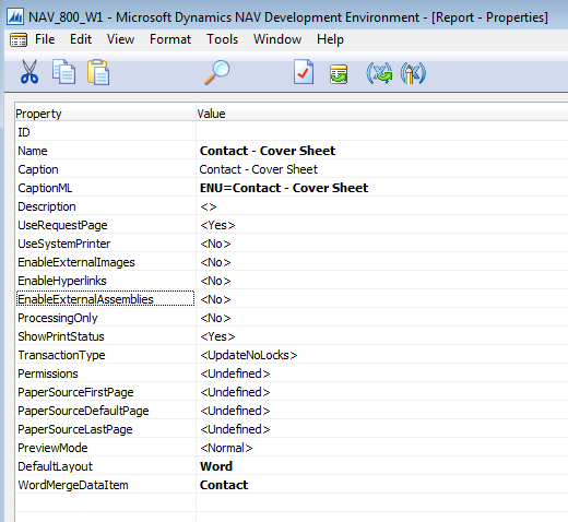 - Run report 5055 Contact – Cover Sheet from NAV development environment.