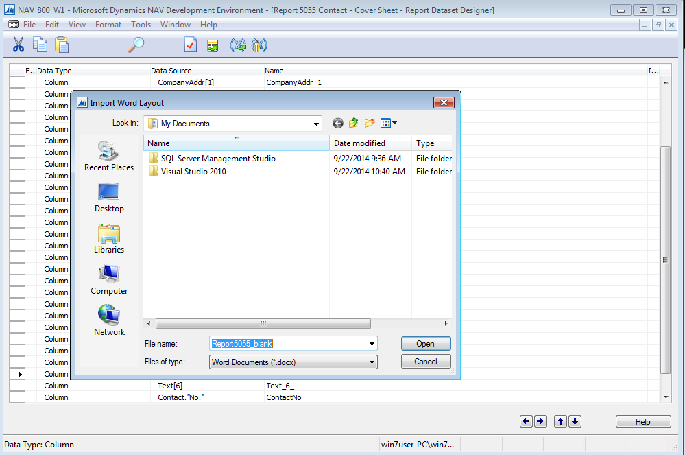 - Now go back to NAV 2015 development environment and open the design of report 5055.