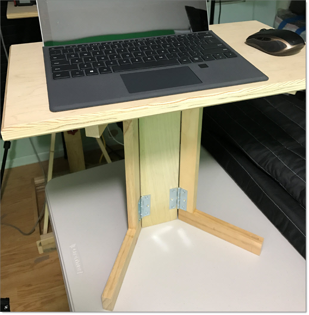 I didn't want, or need, a typical boxy table-top lectern. I wanted something simple, compact, portable and light, that I could quickly setup for use, and then easily fold up and put away. Unlike a typical lectern with an angled top, I wanted a flat surface so that my Surface Pro and my mouse would not slide off. (If you've done presentations with a typical angled lectern, you know what I'm talking about.)