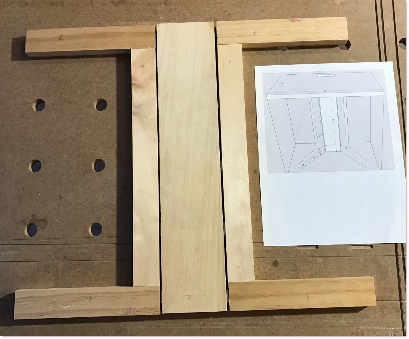 I cut the pieces to length on the miter saw, and things were looking good. To save time, I didn't bother to taper the legs, like what is shown in the design.