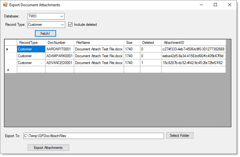Bulk Export Dynamics GP Document Attachments using .NET