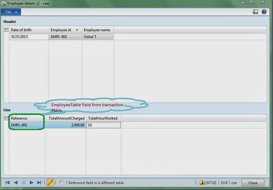 Now, I can say that relation exist between the two tables and relation is RecId field of employeetable to that of newly created employeeTable field (Int64 – datatype).
