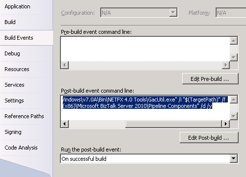 xcopy "$(TargetPath)" "C:\Program Files (x86)\Microsoft BizTalk Server 2010\Pipeline Components" /d /y