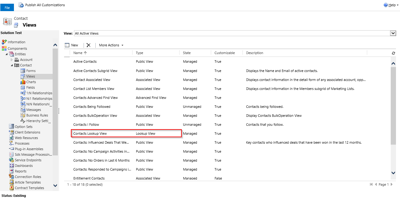 - Open the child entity (in my case contact) view which the type is Lookup View.