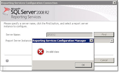 SQL Server Reporting Services Configuration Manager error: Invalid class