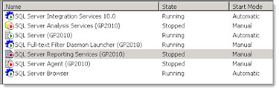 Today I was going to work on a SQL Server Reporting Services project, so I logged on to a GP server with SQL Server 2008 R2 and launched Reporting Services Configuration Manager to see if SSRS was configured.