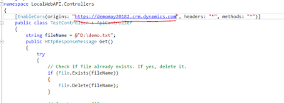 You can see we have added below code on the top of class to allow all request from any system. Later we will restrict to our Dynamics CRM application only.