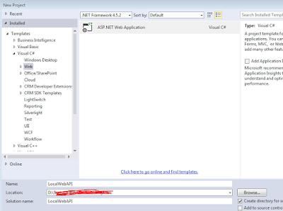 Open Visual studio and create and click on new project select “ASP.NET web Application” from template.