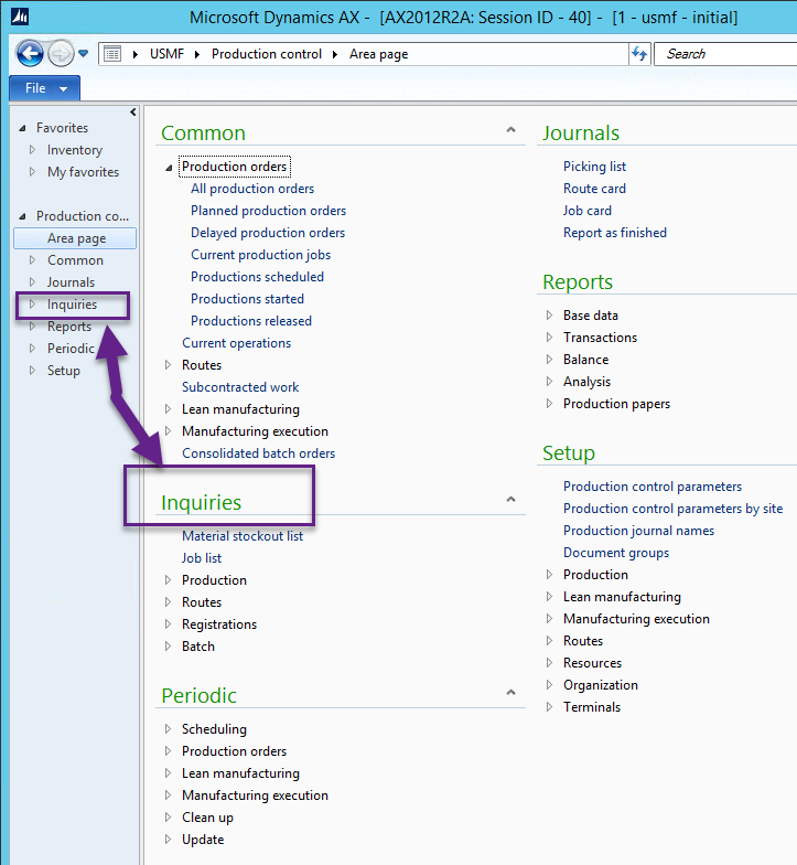 Inquiries within a module in AX |