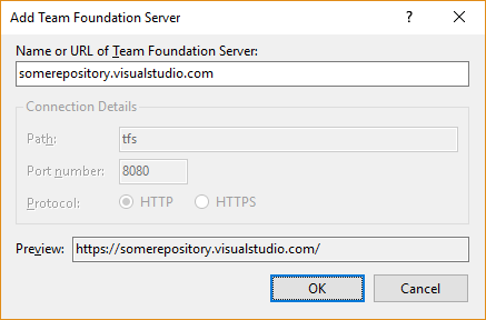 | Add Team Foundation Server (Team | Connect to Team Foundation Server) |