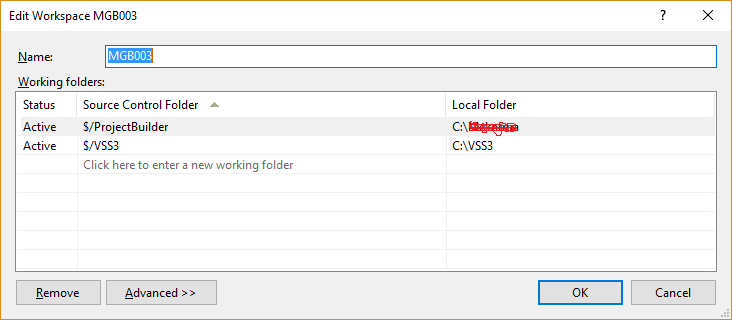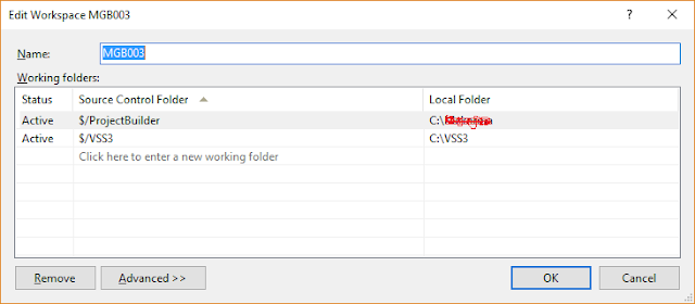 Once the connection to the online repository is in place, a workspace must then be setup to allow for local caching of resources in the repository -- Visual Studio also uses this to allow developers to work offline from the repository.