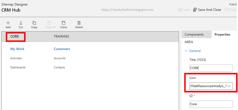 6. Tip: if you want change an icon for an area in the site map or a legacy entity such as price lists. You can do this in the Site Map Designer by opening the properties for the area and changing the icon (groups don't have icons).