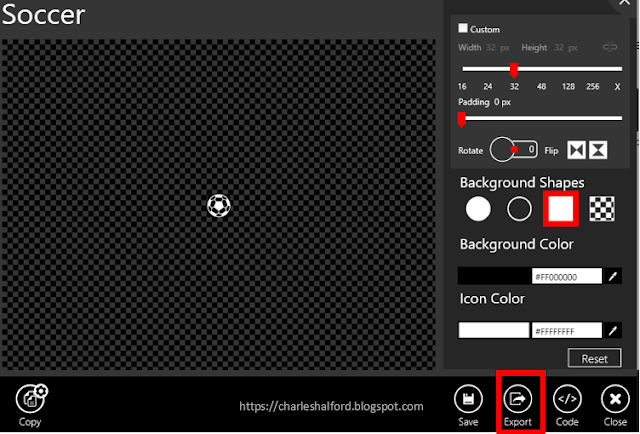1. You'll need to save the icon you want to use as an SVG. In general, I always use Metro Studio (https://www.syncfusion.com/downloads/metrostudio) to get my icons. When I've found the icon I need, best practice is to format it 32px for both dimensions and 0px Padding. Once you've done that, you need to export it. Specify these settings and click Export and Save as type SVG.