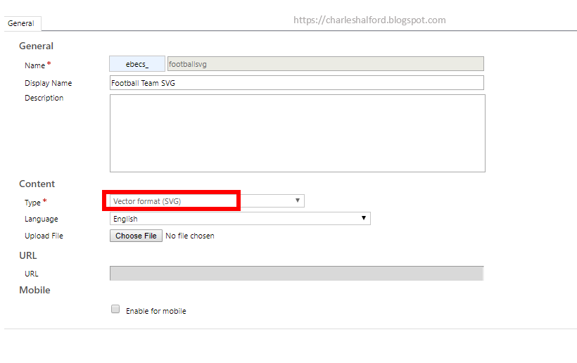 4. Ensure your web resource is specified as an SVG, and remember to Save and Publish!