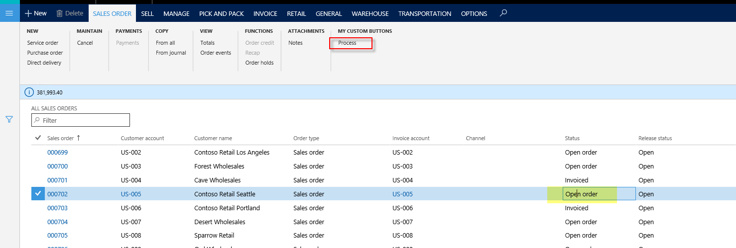 Now we build the project and run the list page form to see if the button is disabled for invoiced sales orders: