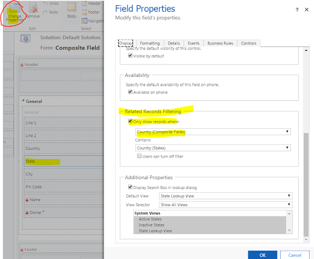 Open form editor and select state attribute and click on change properties. In Display tab we will see new “Related Record Filtering” option.