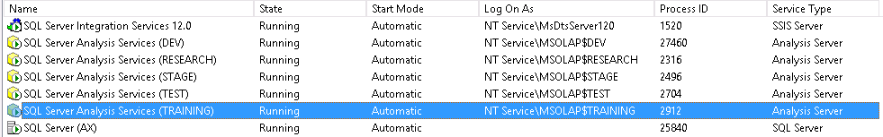 From the error it seems like the machine account is unable to login. Now in my scenario the SSAS service runs on the same server as the SQL Server Engine and the instance with the Dynamics AX database. In addition the SSAS service is NOT running using a dedicated Domain Service Account, but rather a local service account. The error then becomes sort of misleading if you read off the account name, because it is actually referring to machine account name.