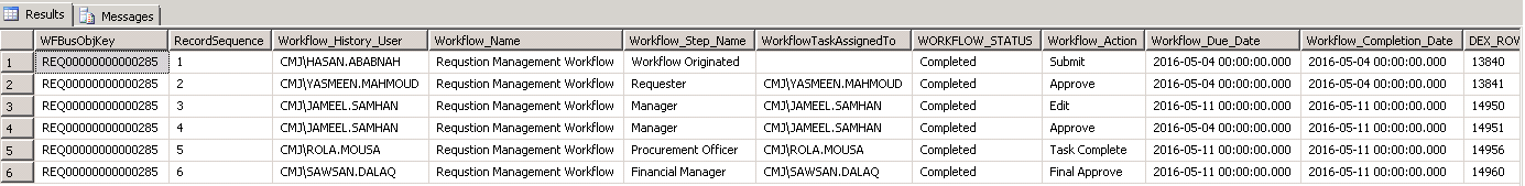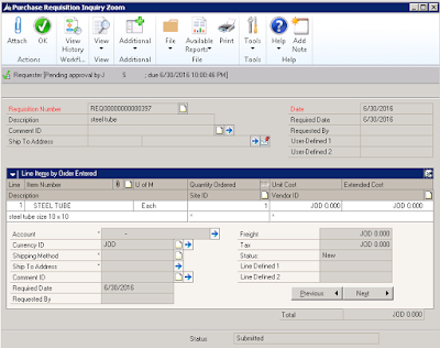 Purchase requisitions in Dynamics GP with workflow history can be reported through inquiry windows, which provides a thorough details of all the changes/ modifications, approvals of rejections that were applied on the requisition. In this post, I am providing an SQL script that can be used to retrieve these details.
