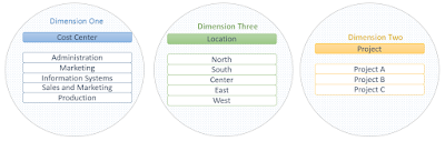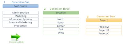 Multiple dimensions will be filled during the entry according to a predefined order, let's include the same previous example from the previous post, three dimensions which are: Cost Center, Location and Project.