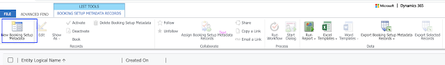 Go to advance find and select the "Booking Metadata Setup" entity and click on the create new record button on the advanced find UI.