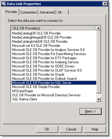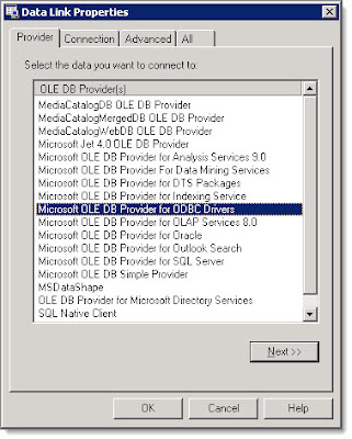 I saw this at the time, and paused for a second, but I figured that the ODBC provider should work. Well, since the Requester clearly wasn't working, I decided to try the more familiar Microsoft OLE DB Provider for SQL Server.
