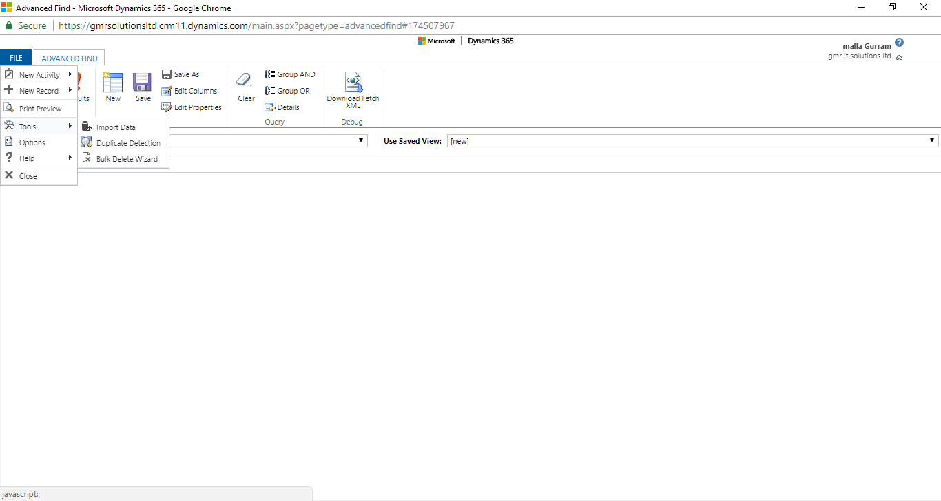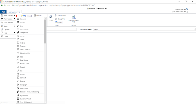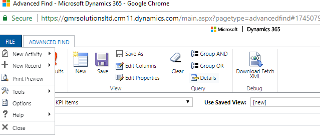 Microsoft Dynamics 365 Advanced Find Menu Features