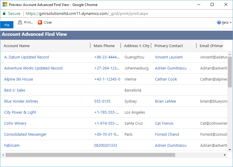 Menu Item "Print Preview": when advanced find is used to fetch some records using the filter criteria and fetch all the records based on the search criteria then we can see the print preview before it can be print.