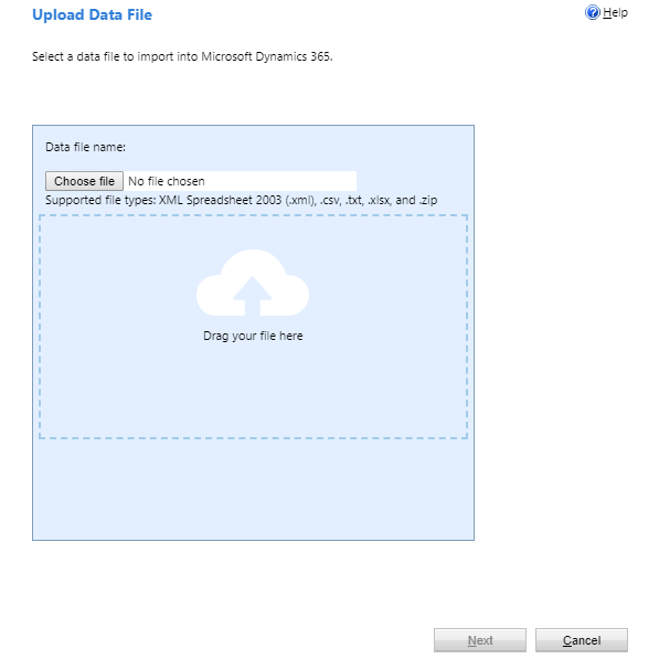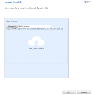 Import Data : Click on the Import Data menu item and select the file want to import into Dynamics 365