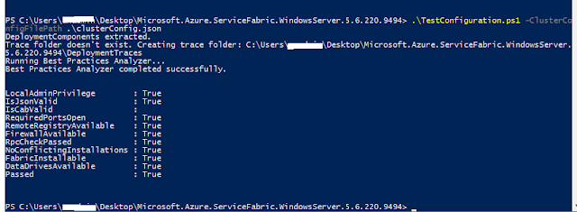 Finally, I test the ClusterConfig file through the command .\TestConfiguration.ps1 -ClusterConfigFilePath .\clusterConfig.json